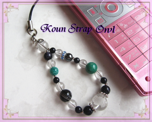 水晶:8mm、6mm、4mm、彫石(ふくろう)10mm